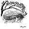 When Coyote heard this, he remembered that he also had been careless, and maybe they would come looking for him! "Wait for me here! I'm going to go back to clean up my mess before they find out." So Coyote left Stinkbug there to listen for what else he could hear and went far, far back up the trail. He cleaned up everything. And to make sure he wouldn't be found out, he carefully erased his tracks with a branch. He even walked downstream in the creek so that no one would be able to follow his tracks. Finally, after a long time, he came back to where Stinkbug had been. But Stinkbug was gone.